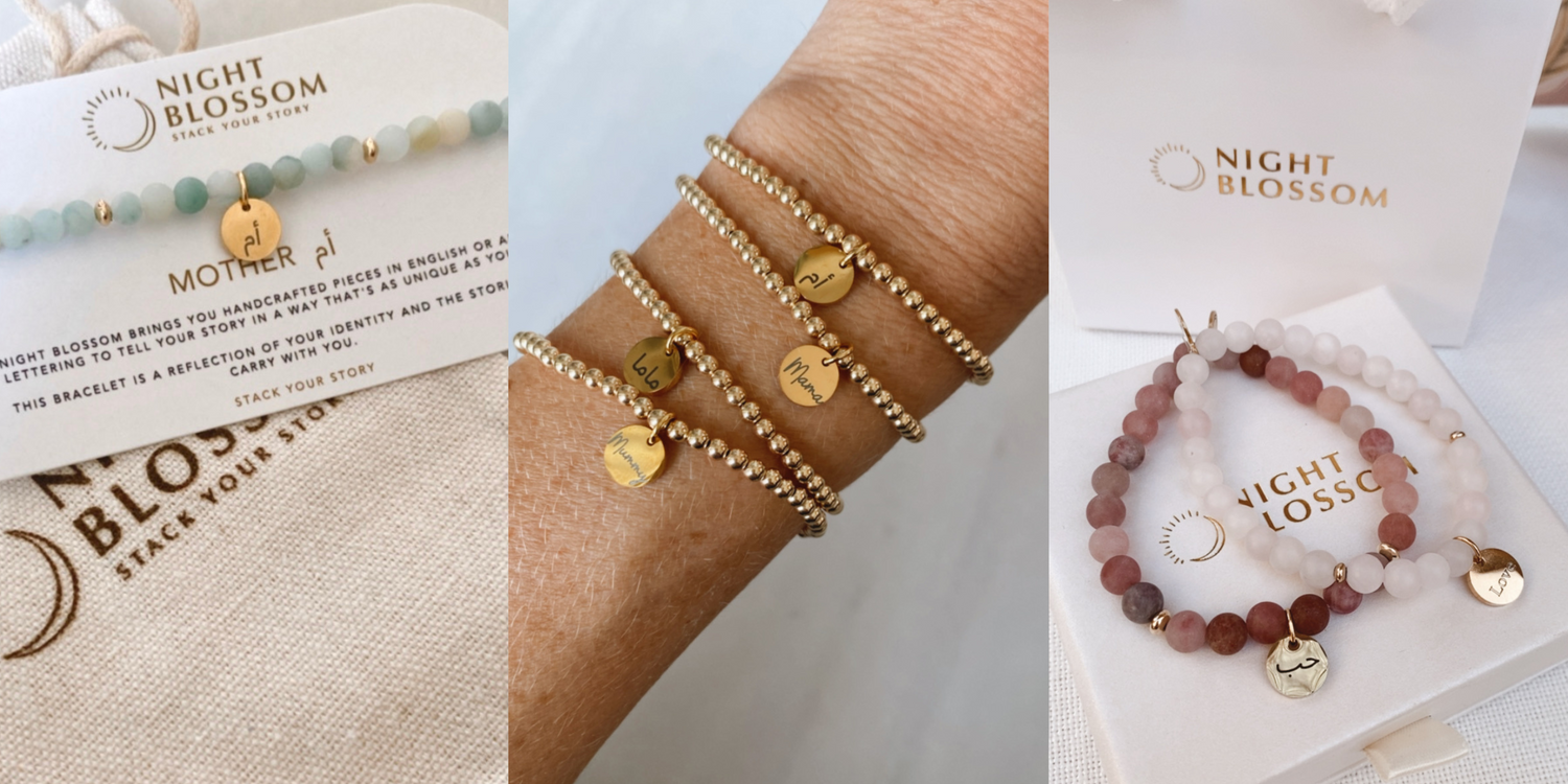 Stack your style and wear your heart on your wrist with customisable English and Arabic designs. Personalised designs available using natural stones and high quality, non-tarnish metals. Based in Dubai. Delivery is available across the GCC.