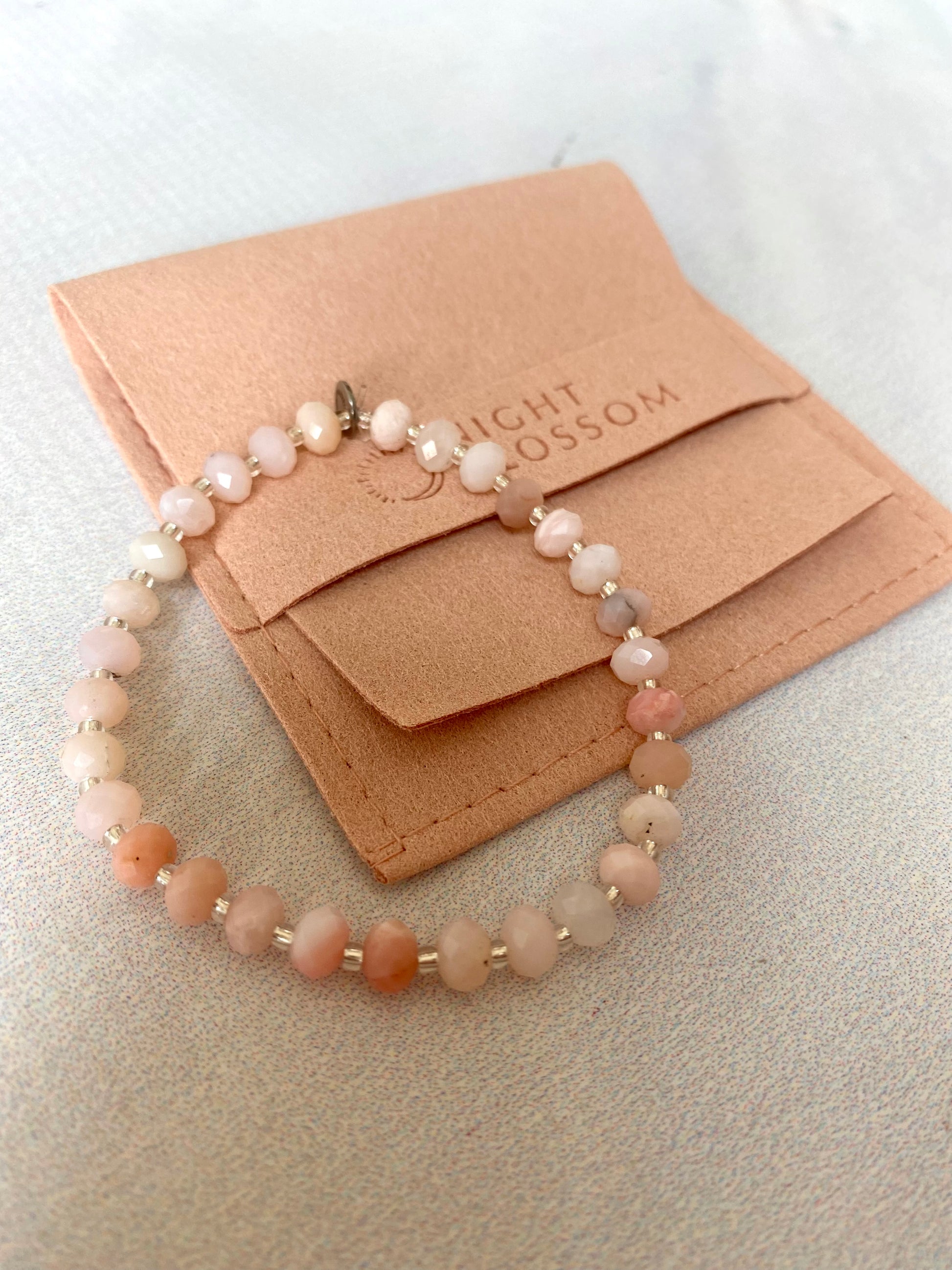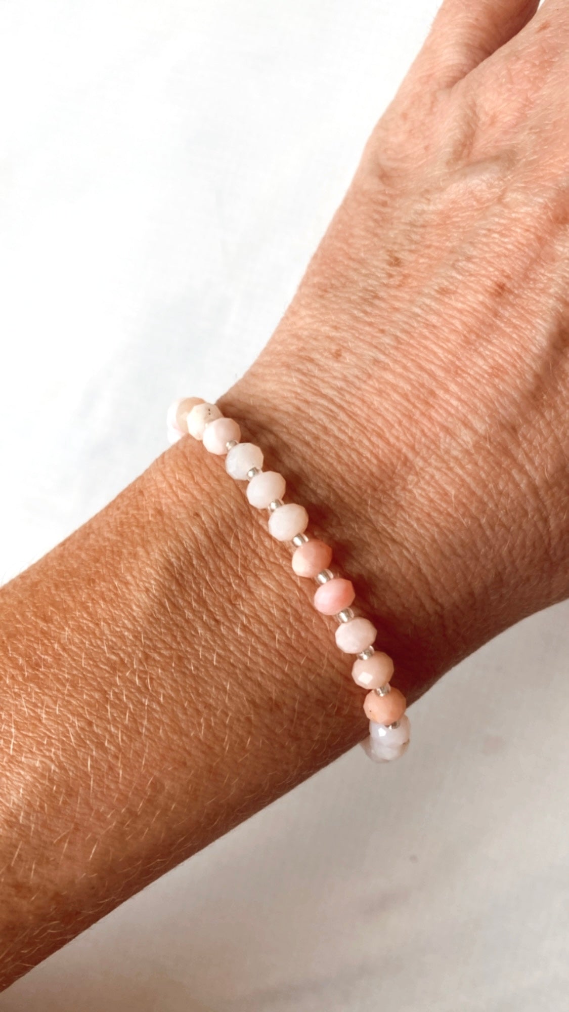 Beautiful crystal and bead bracelet made with with pink opal which is thought to foster emotional healing, enhance feelings of peace and tranquility and encourage love and compassion.