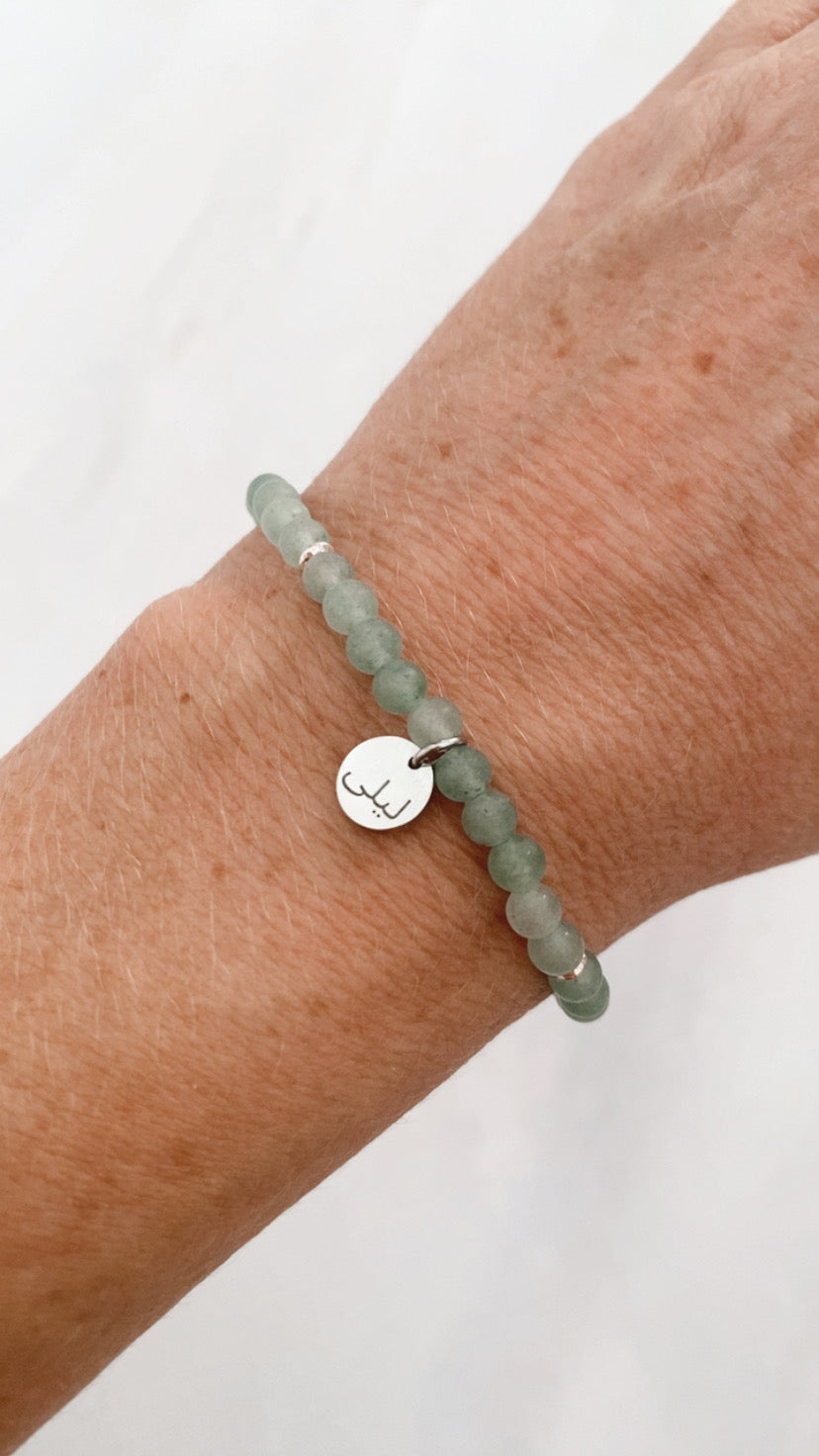 Made with 4mm natural stone beads in a choice of 5 colours. This gorgeous piece has an engraved, waterproof, charm with your choice of engraving, accented with sterling silver accent beads.