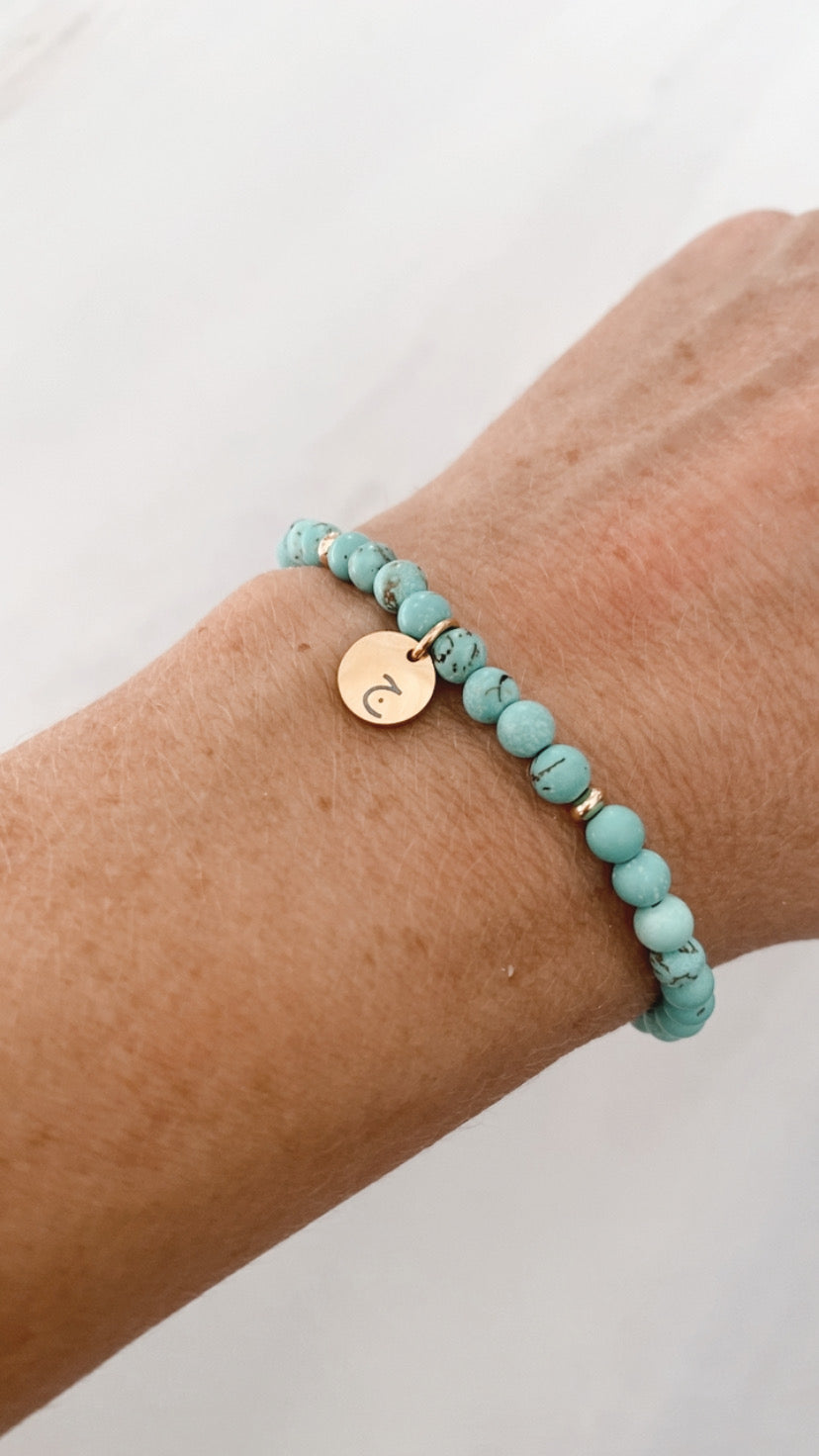 Made with 4mm natural stone beads in a choice of 5 colours. This gorgeous piece has an engraved, waterproof, charm with your choice of engraving, accented with non-tarnish, gold-filled accent beads.
