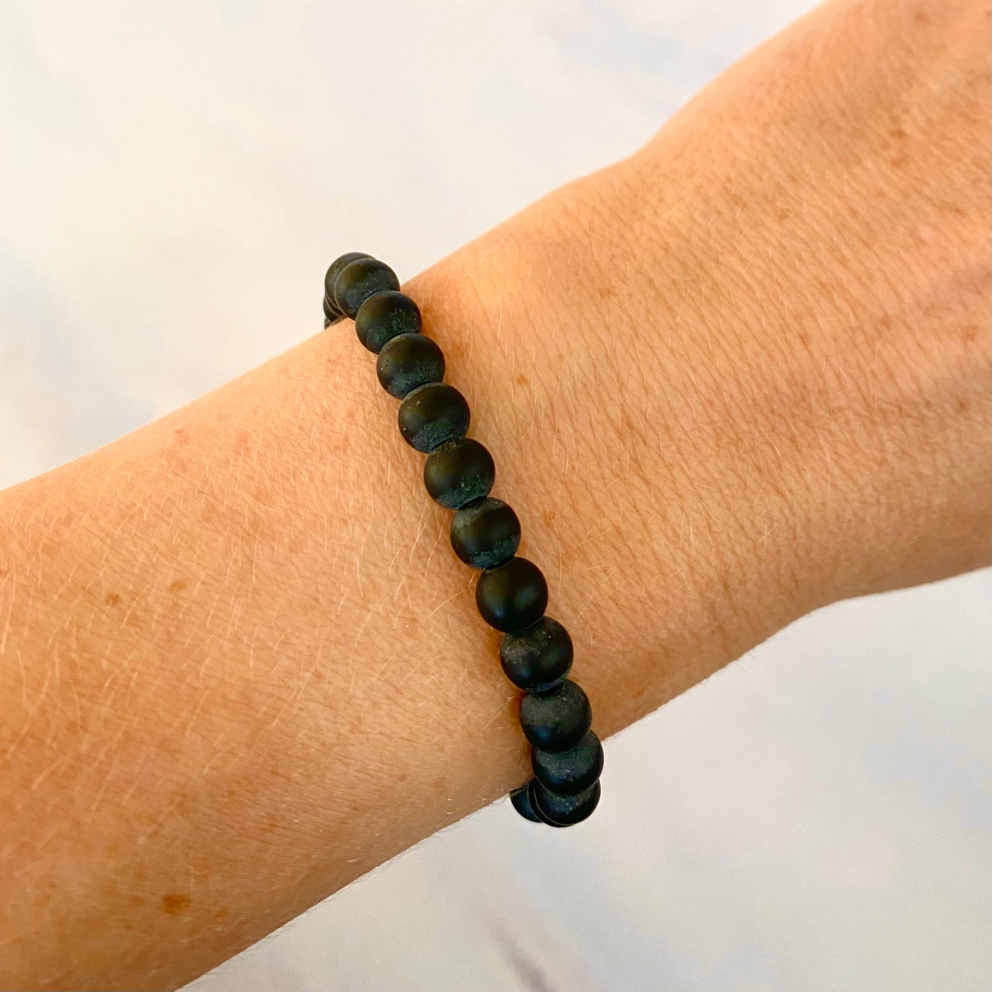 These bracelets are made with a strong crystal elastic cord so stretch to fit and are long wearing. Please keep away from water.