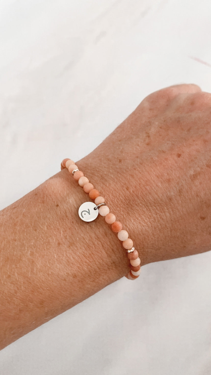 Made with 4mm natural stone beads in a choice of 5 colours. This gorgeous piece has an engraved, waterproof, charm with your choice of engraving, accented with sterling silver accent beads.