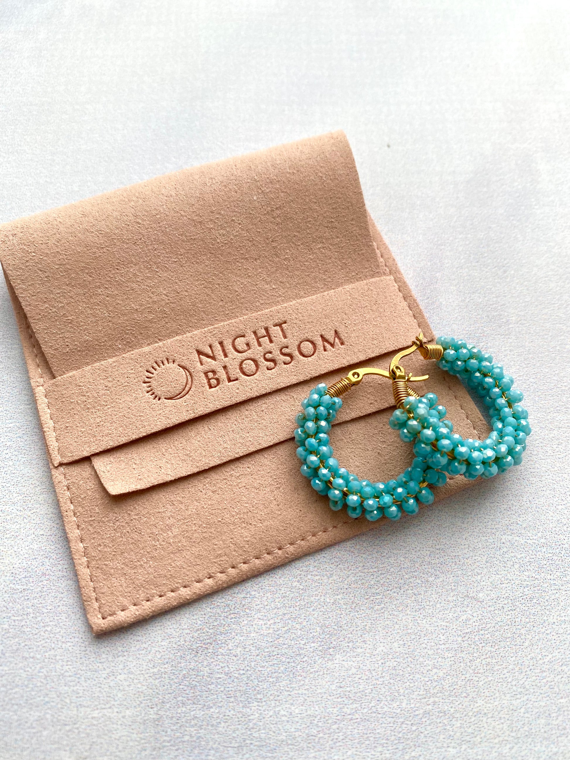 Gold plated stainless steel hoops with beautiful turquoise coloured crystal embellishment.